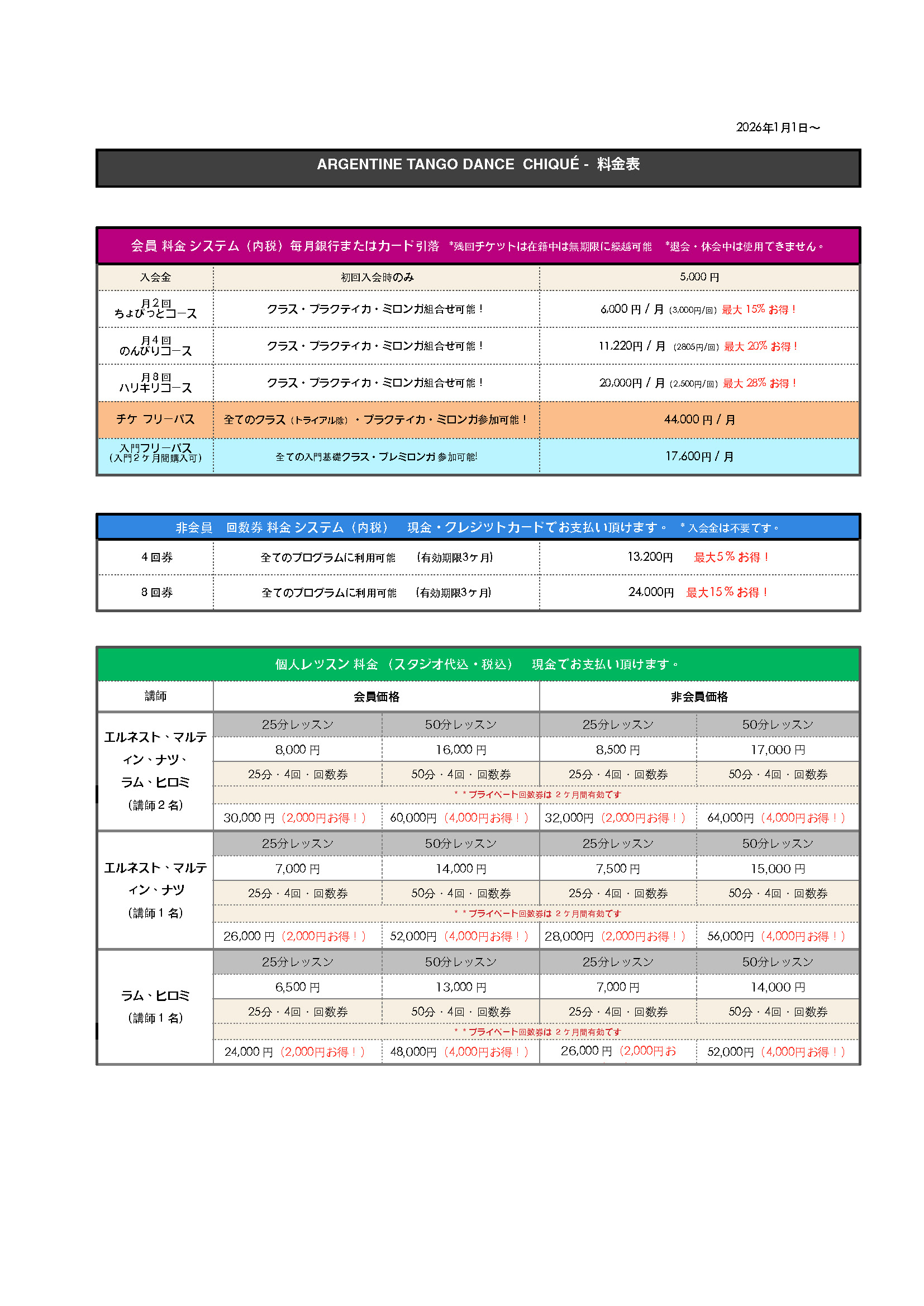 *レッスンスケジュールは、変更されている場合があります。事前にお問い合わせください。